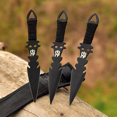 Crafted from high carbon steel, this 3 piece throwing knife set is perfect for any knife throwing enthusiast. Its superior material offers durability and precision, enhancing your throwing accuracy. Add this set to your collection and take your skills to the next level. Well balanced and razor sharp.