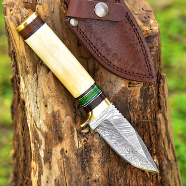 The heart of this exquisite knife lies in its blade, which is forged from layers of high-quality Damascus steel. The intricate pattern, reminiscent of flowing water or swirling mist, is a testament to the ancient art of forging and folding metal. Each fold and hammer blow contributes to the knife's unique and mesmerizing design, ensuring that no two blades are alike.
