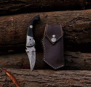 'Oshtari' Damascus Folding Knife (Water Buffalo Horn Handle)